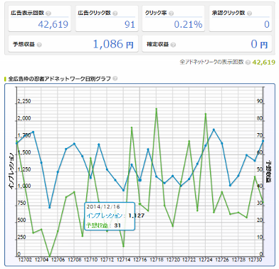 ブログに忍者AdMaxのバナーを貼って稼ぐ ネット稼ぎ【おススメ度★★★★★】 2015年01月03日 0 【忍者AdMax】おススメ度★★★★★ 忍者AdMaxは単純に言うと、ブログに忍者AdMaxの広告(バナー)を貼るだけで稼げます! まずネット稼ぎで何をすれば良いの?って迷われている方に本当におススメします(^^♪ <忍者AdMaxの特徴> (1)あなたの収益が最大となるように、最も高単価の広告を都度選択し、 表示型・クリック型広告を自動で配信してくれます。 (2)忍者AdMaxFriendsをブログなどで紹介し登録して頂けると、 紹介した方が稼いだ5%が上限金額なしで還元され続けます。 (3)審査が甘く、すぐに無料で開始できる。 (4)一つの管理画面(グラフ付き)で、毎日の収益を確認できる。 いろいろと書きましたが、私がおススメする本当の理由は、 ブログに広告を貼るだけで、手間なく楽して簡単に稼げる!ところなんです。 ブログに広告を貼ることへ抵抗がなければ、ぜひ体験してみてください♪ ▲忍者AdMax登録用バナーです。興味のある方はここからスタート▲ <忍者AdMaxの収入を上げる方法> ※ご参考です (1)1つのブログに3つまで広告(バナー)が貼れますので、 ブログのテンプレートに合わせて、広告をできるだけ多く貼りましょう。 (2)推奨サイズの広告を選択しましょう。 推奨サイズ:300×250、728×90、468×60、160×600、200×200 ※200×200は表示型収入広告が配信されないらしいのでご注意を (3)できるだけ大きい広告を選択しましょう。 (4)記事内に貼る広告はクリック率を高めてくれるので、 記事内に広告を貼りましょう。 ※記事内の広告は本当にすごいです! (5)ブログで忍者AdMaxを紹介しましょう。 (6)複数のブログを運営してれば、できるだけ多く広告を貼りましょう。 (7)アクセスUPに取り組みましょう。 これは最強に難しい課題ですね(笑) 私も課題です… ここでもいろいろと書きましたが、一番成果を出すには『継続』ですよ(^^♪ 成果が出ないとすぐにあきらめてしまうのが一番時間効率が悪いです。 数年後に数万円稼げるように少しずつ育てるという考え方が素敵ですね。 <忍者AdMaxでの注意点> (1)自分のブログに貼った広告へ自らクリックしないこと。 (2)広告へクリック誘導をしないこと。 『クリックお願いします』とか書かない (3)トラフィックエクスチェンジと併用しないこと。 上記3点をやってしまうと強制退会を受ける可能性を高めます。 強制退会までいかなくても、なんらかのペナルティは受けると思いますのでご注意を! <管理画面> ※ご参考です ◎忍者AdMax管理画面 ◎忍者AdMaxFriends管理画面 毎日の推移が一目でわかるダッシュボードが用意されていますので、 がんばって稼ぐぞ~って励みになると思います。 <忍者AdMax運営会社概要> (株)サムライファクトリーが運営しています。 高機能アクセス解析ツールのNINJYA ANALYZEなどの有名なツールを 提供している会社でもあります。 ユーザー数も約320万人、総ツール数約800万(2014年6月現在)を提供する 安心できる会社が運営しています。 ▼忍者AdMaxに興味がある方はこちらからスタート▼ [2回]